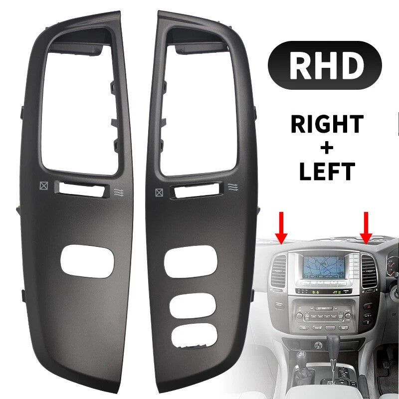 Enhance your dashboard with this 2-piece black air vent trim set, designed for Toyota Land Cruiser 100 / Lexus LX470 (1998–2007). The set includes left and right side dashboard vent trims, made of durable ABS plastic with a premium black finish. Perfect for restoring or upgrading your vehicle’s interior to factory style.